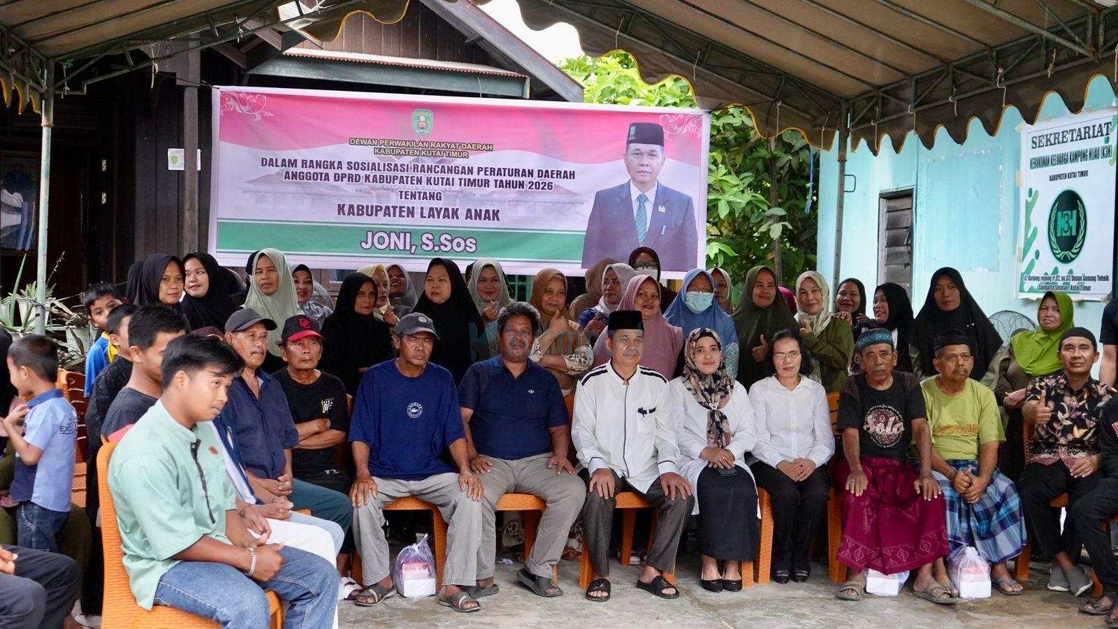 KUTIMPOST.COM, Sangatta Selatan – Anggota DPRD Kutim Joni Sosialisasikan Raperda Kabupaten Layak Anak. Anggota Dewan Perwakilan Rakyat Daerah (DPRD) Kabupaten Kutai Timur (Kutim), Joni, menggelar kegiatan Sosialisasi Peraturan Daerah (Sosper) terkait Rancangan Peraturan Daerah (Raperda) tentang Kabupaten Layak Anak (KLA) tahun 2026, di Sangatta Selatan, Rabu (25/2/2026).