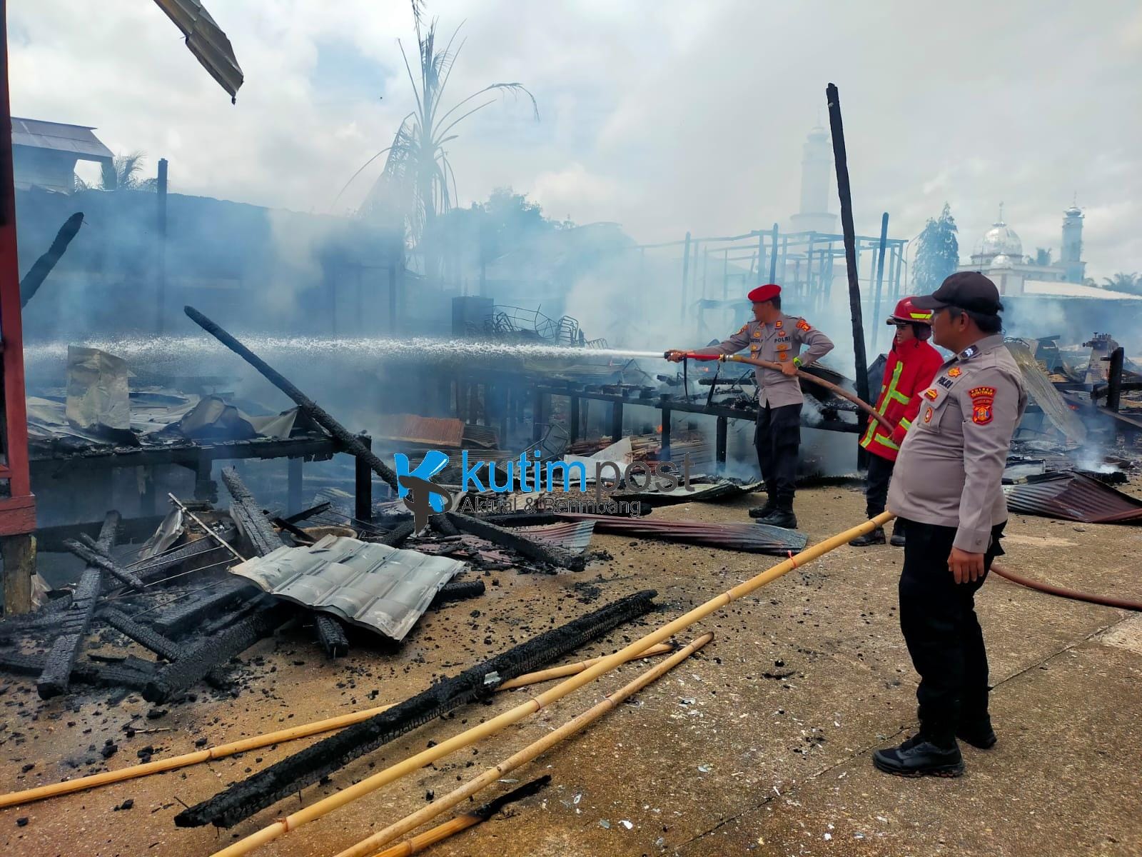 Bangunan Pemerintahan Kebakaran, Kapolsek Muara Wahau Turun Langsung Bantu Padamkan Api