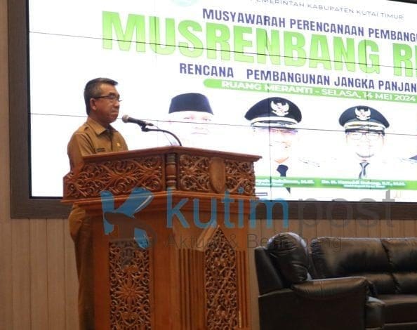 Sangatta – Badan Perencanaan Pembangunan Daerah (Bappeda) Kabupaten Kutai Timur (Kutim) menggelar Musyawarah Perencanaan Pembangunan (Musrenbang) Rencana Pembangunan Jangka Panjang Daerah (RPJPD) 2025-2045, yang berlangsung di Ruang Meranti Kantor Bupati Kutim pada tanggal 14 Mei 2024.