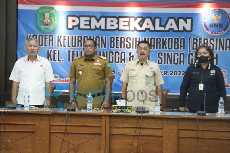 SANGATTA – Sebanyak 35 Kader/Satuan Tugas (Satgas) dari Kelurahan Teluk Lingga dan Kelurahan Singa Geweh, mengikuti pembekalan Bersih dari Narkoba (Bersinar), yang digelar oleh Badan Narkotika Kabupaten Kutai Timur (BNK Kutim). Wakil Bupati Kutim Kasmidi Bulang selaku Ketua BNK Kutim Hadir memberikan arahan sekaligus membuka kegiatan tersebut, di Ruang Damar, Gedung Serba Guna (GSG), Bukit Pelangi, Sangatta, (5/9/2022).