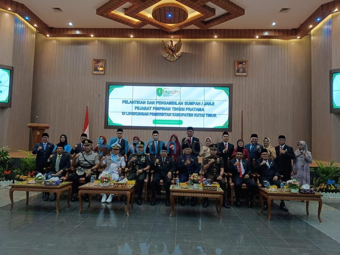 KUTIMPOST.COM, Sangatta – Bupati Kutai Timur Lantik 8 Pejabat Pimpinan Tinggi Pratama. Bupati Kabupaten Kutai Timur (Kutim), Ardiansyah Sulaiman, telah melantik delapan pejabat Pimpinan Tinggi Pratama (PTP) untuk mengisi kekosongan kepemimpinan dalam satuan kerja perangkat daerah (SKPD). Acara berlangsung di Ruang Meranti, Kantor Bupati Kutim pada Rabu (8/5/2024).