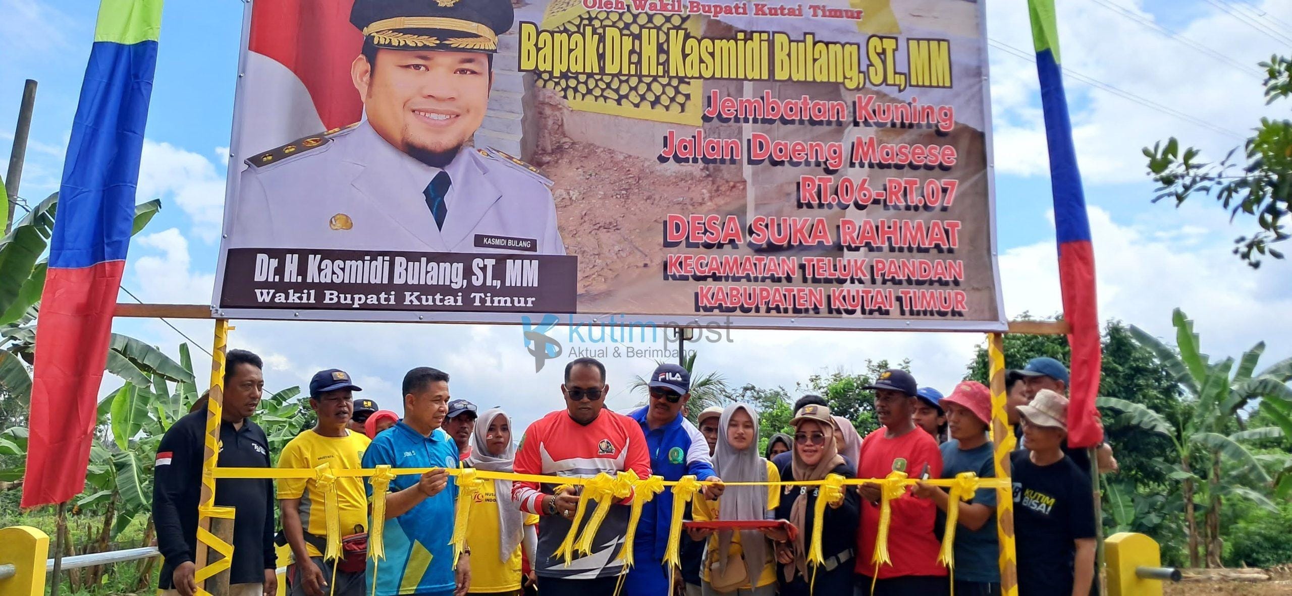 Jembatan tersebut diresmikan secara langsung oleh Wakil Bupati Kutim, Kasmidi Bulang dan turut disaksikan oleh Wakil Ketua DPRD Kutim, Arfan, Kepala Desa Suka Rahmat, serta sejumlah masyarakat lainnya.