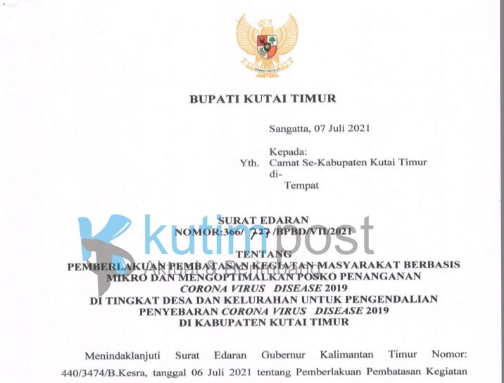 Dalam surat dimaksud terdapat beberapa aturan, seperti optimalisasi pelaksanaan PPKM Mikro sampai ketingkat RT. Mengintensifkan disiplin protes COVID-19 dengan menerapkan 5 M protokol kesehatan. Memperketat pengawasan pintu masuk jalur darat, laut dan udara di wilayah Kutim.