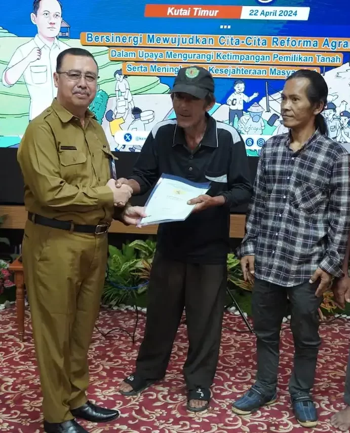 Dalam kegiatan yang dihadiri Asisten Pemerintahan Umum dan Kesejahteraan Rakyat (Pemkesra) Poniso Suryo Renggono, Kepala Kantor Pertanahan Kutim, Murad Abdullah, serta jajaran dan para warga penerima sertifikat tanah, diselenggarakan di Ruang Tempudau, Kantor Sekretariat Kabupaten Kutim pada Senin (22/4/2024).