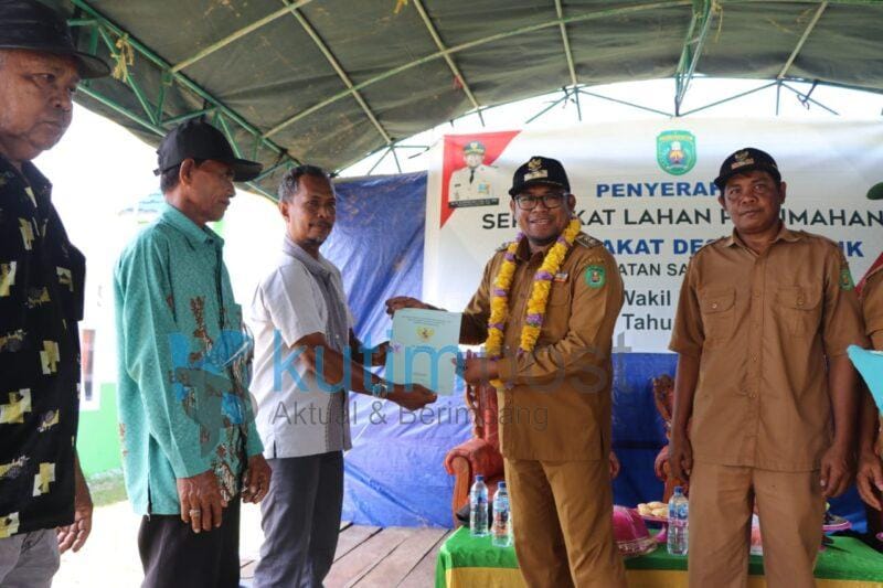 KUTIMPOST.COM, Sangkulirang – Kasmidi Bulang Serahkan 60 Sertifikat Lahan Perumahan Masyarakat Desa Perupuk. Wakil Bupati Kutai Timur (Kutim) Kasmidi Bulang menyerahkan 60 sertifikat lahan perumahan masyarakat Desa Perupuk Kecamatan Sangkulirang, selasa (4/10/2022) di Halaman Kantor Desa Perupuk.