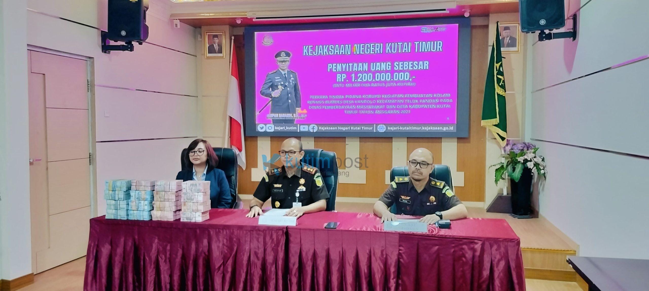 SANGATTA – Kejaksaan Negeri (Kejari) Kutai Timur (Kutim) menyita uang sebesar Rp1,2 miliar dari kasus korupsi proyek pembangunan kolam renang Badan Usaha Milik Desa (Bumdes) Desa Kandolo, Kecamatan Teluk Pandan.