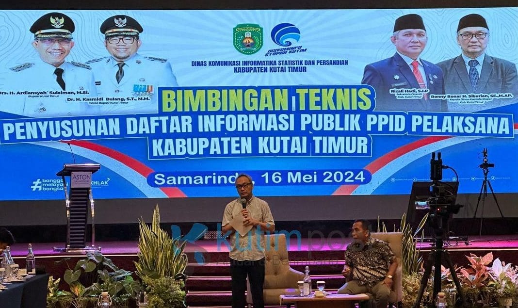 Untuk terus meningkat pelayanan SPBE, di Kabupaten Pemerintah Kabupaten Kutai Timur (Pemkab Kutim) menggelar Bimbingan Teknis Penyusunan Daftar Informasi Publik PPID Pelaksana Kabupaten Kutim, yang diikuti seluruh perwakilan perangkat daerah (PD), 18 Kecamatan dan 10 desa, Jum’at (17/5/2024) di Grand Ballroom, Hotel Aston, Samarinda.