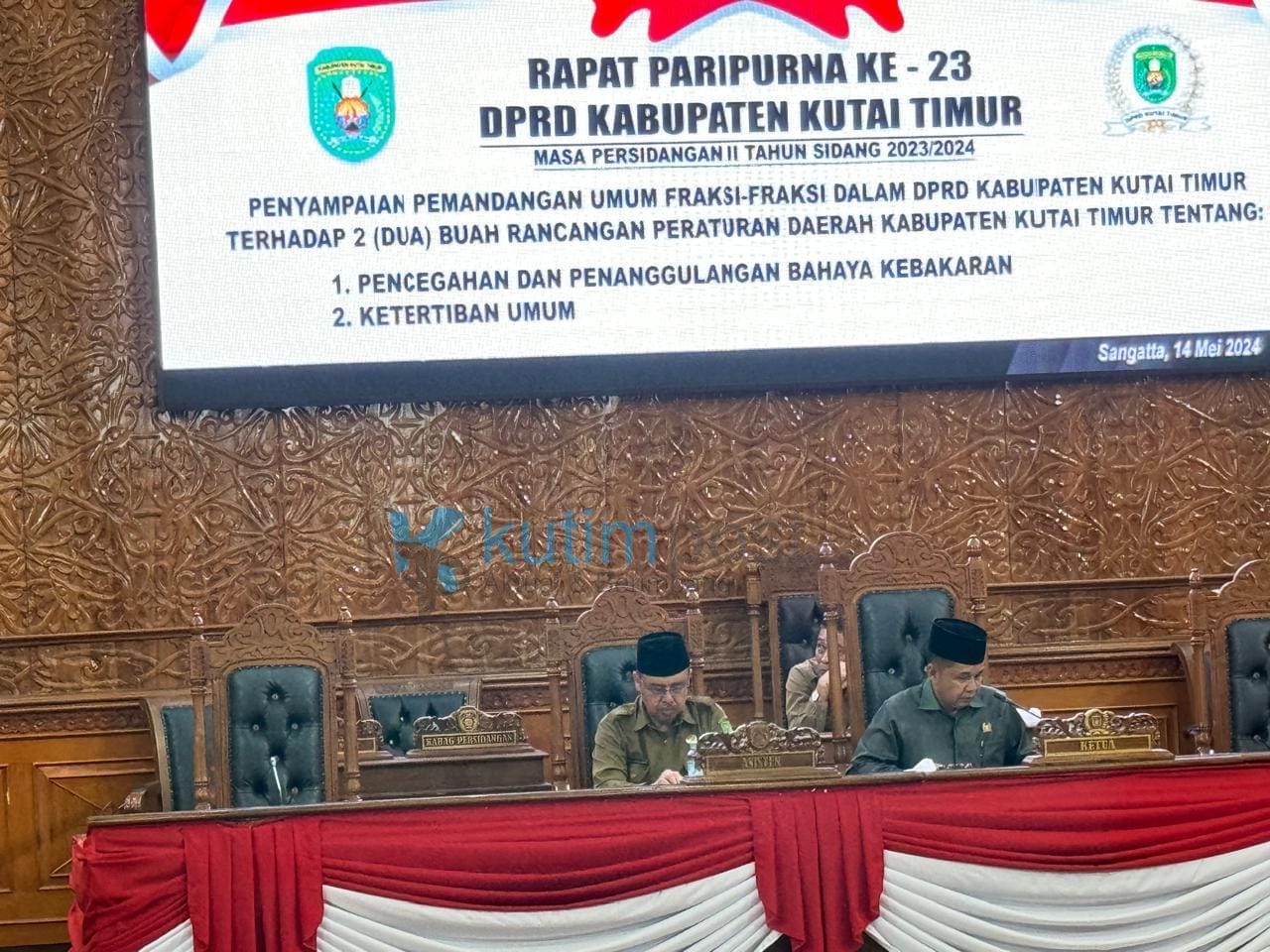Lebih lanjut, ia memberi kesempatan kepada masing-masing fraksi untuk menyampaikan pemandangan umum mereka terkait dua buah Raperda Kutim, yakni Raperda tentang Pencegahan dan Penanggulangan Bahaya Kebakaran, serta Raperda tentang Ketertiban Umum.