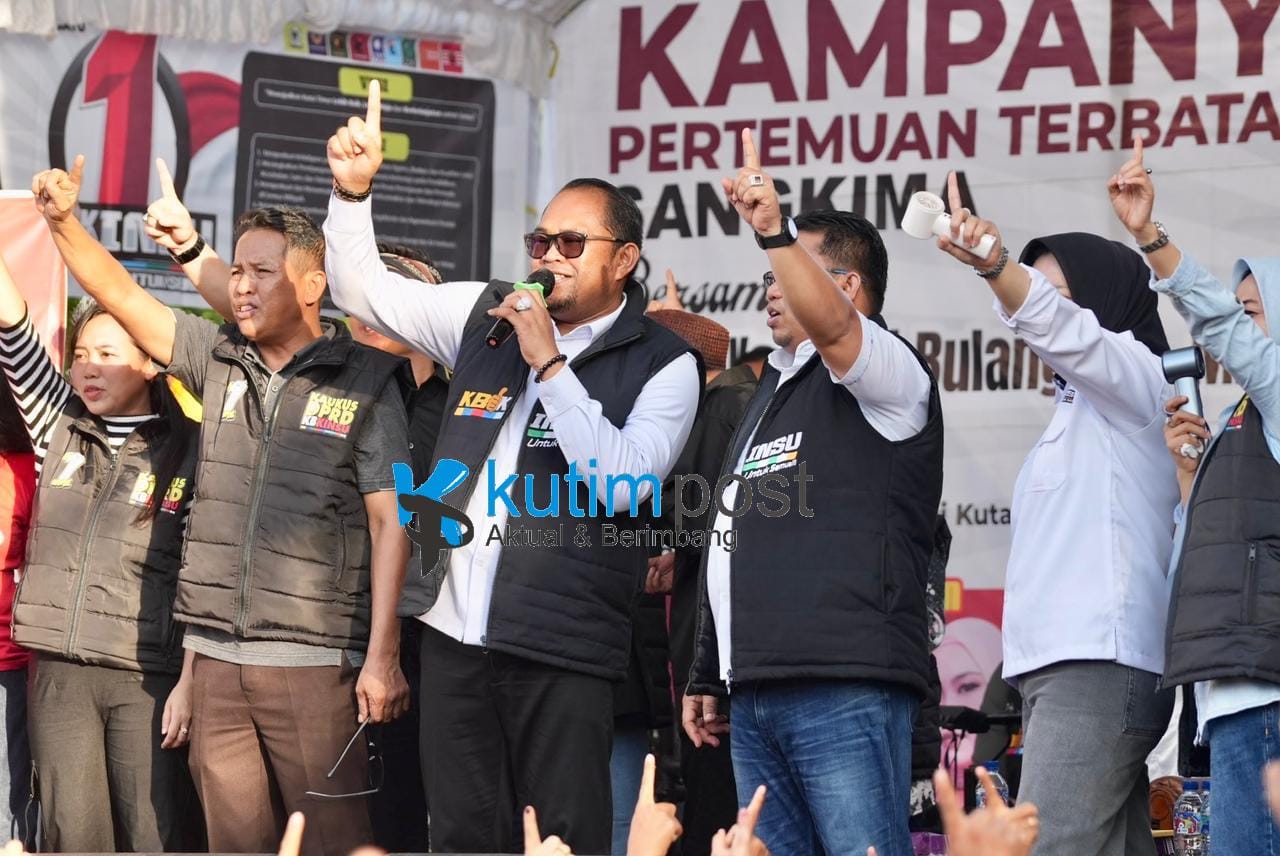 Sangatta Selatan – Safari kampanye pasangan calon Bupati dan Wakil Bupati Kutai Timur (Kutim), Kasmidi Bulang dan Kinsu (KB-Kinsu), berlanjut dengan antusiasme besar di KM Jalan Laban, Desa Sangkima, Kecamatan Sangatta Selatan, Rabu (6/11/2024). Ribuan warga terlihat berkumpul, menyambut kehadiran paslon nomor urut 1 tersebut yang didampingi para pendukung, relawan, serta simpatisan.