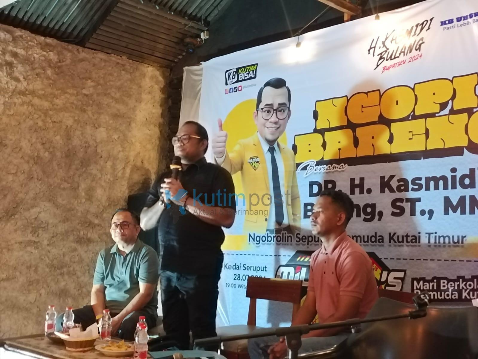 Sangatta – Dalam rangkaian acara Ngopi Bareng dengan tema “Obrolan Seputar Pemuda”, bakal calon Bupati Kutai Timur (Kutim), Kasmidi Bulang, bertemu dengan ratusan pemuda Sangatta pada Minggu (28/7/2024) malam. Acara silaturahmi yang berlangsung dengan meriah dan penuh keakraban di kafe Sruput Teluk Lingga Sangatta Utara ini juga turut dihadiri oleh anggota DPRD Kutim, Sayid Anjas, dan Ketua Harian Partai Golkar Kutim, Rudi Hartono.