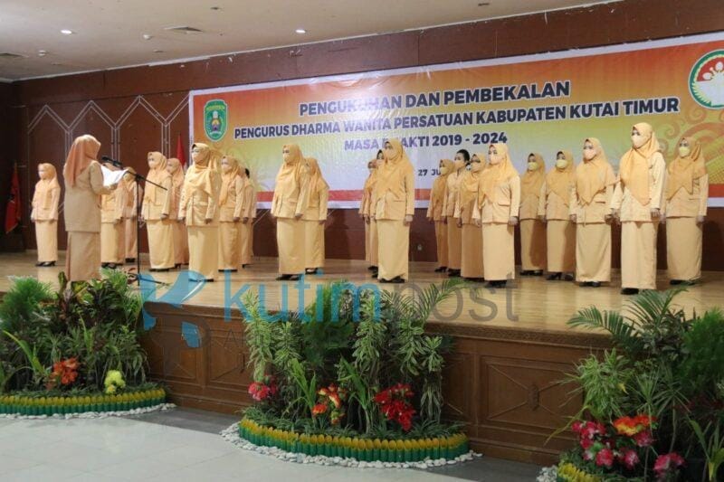 KUTIM POST, SANGATTA – Pengukuhan Pengurus Dharma Wanita Persatuan (DWP) Kabupaten Kutai Timur (Kutim) untuk masa bakti 2019 – 2024 digelar, Rabu, (27/07/2022) di Ruang Akasia Gedung Serba Guna Bukit Pelangi. Pengukuhan dilakukan langsung oleh Ketua Dharma Wanita Persatuan (DWP) Provinsi Kalimantan Timur (Kaltim), Ny. Indri Indah Winardi Riza.