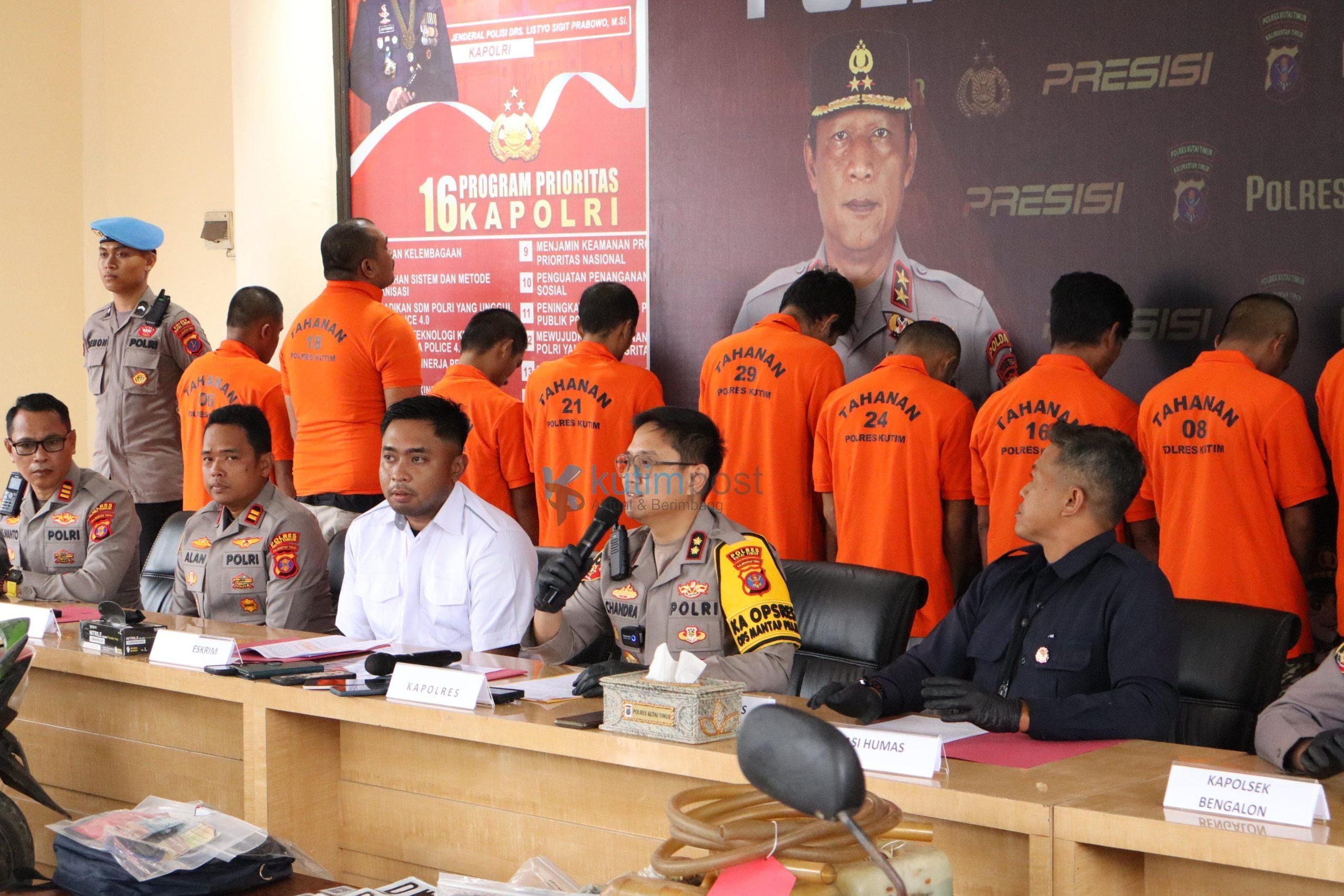 Sebanyak 12 pelaku curanmor dan sejumlah barang bukti berupa 10 unit sepeda motor dengan berbagai jenis, serta surat berharga kepemilikan kendaraan berhasil diamankan oleh Polres Kutim, dengan total kerugian diperkirakan sekitar Rp145.000.000 (Seratus Empat Puluh Lima Juta Rupiah).
