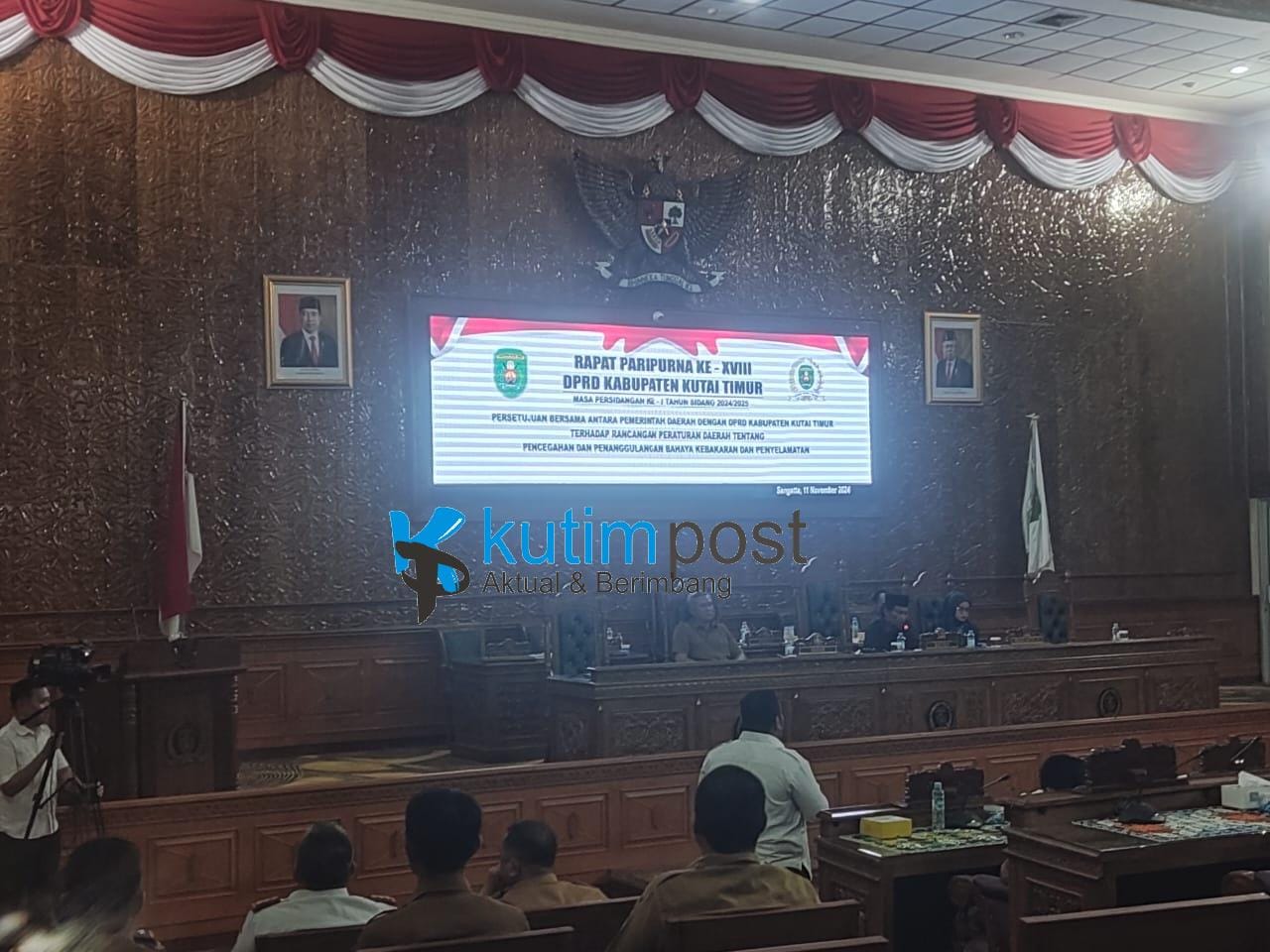 Sangatta – Dewan Perwakilan Rakyat Daerah (DPRD) Kabupaten Kutai Timur (Kutim) menggelar Rapat Paripurna ke-18 di Ruang Sidang Utama DPRD Kutim. Agenda utama rapat tersebut adalah persetujuan bersama antara Pemerintah Daerah dan DPRD Kutim terhadap Rancangan Peraturan Daerah (Raperda) Pencegahan dan Penanggulangan Bahaya Kebakaran dan Penyelamatan.